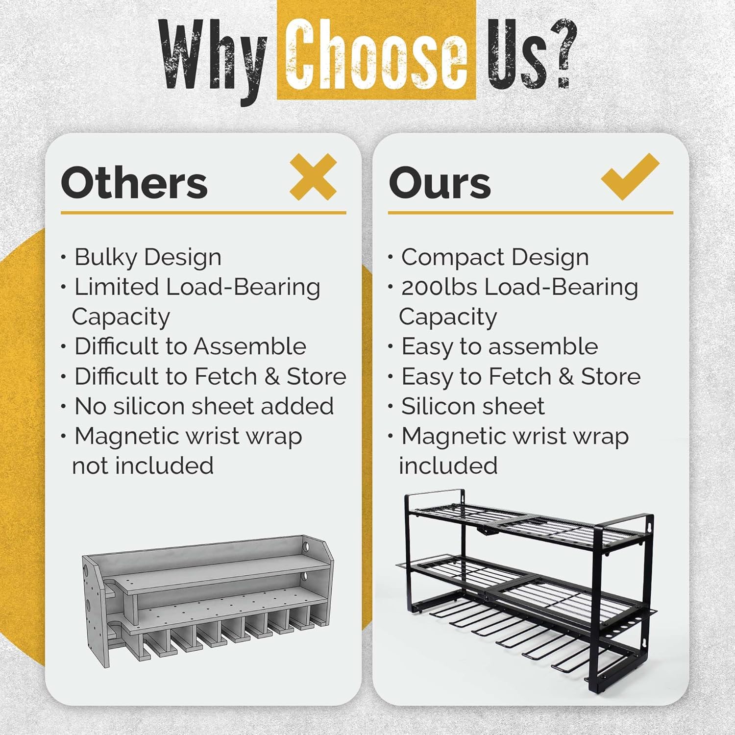 - šššššš ššš ššššššššš šššššš: Constructed from heavy-duty alloy steel, this Power Tool Storage Rack is built to last. It features superb welding that allows it to support up to 190 lbs, ensuring it remains reliable, eliminating any concerns about the rack detaching from the wall.