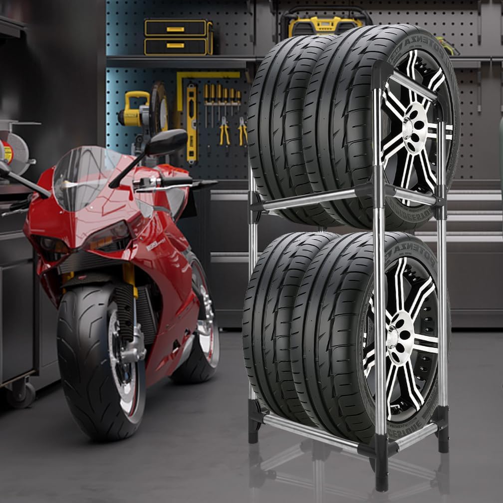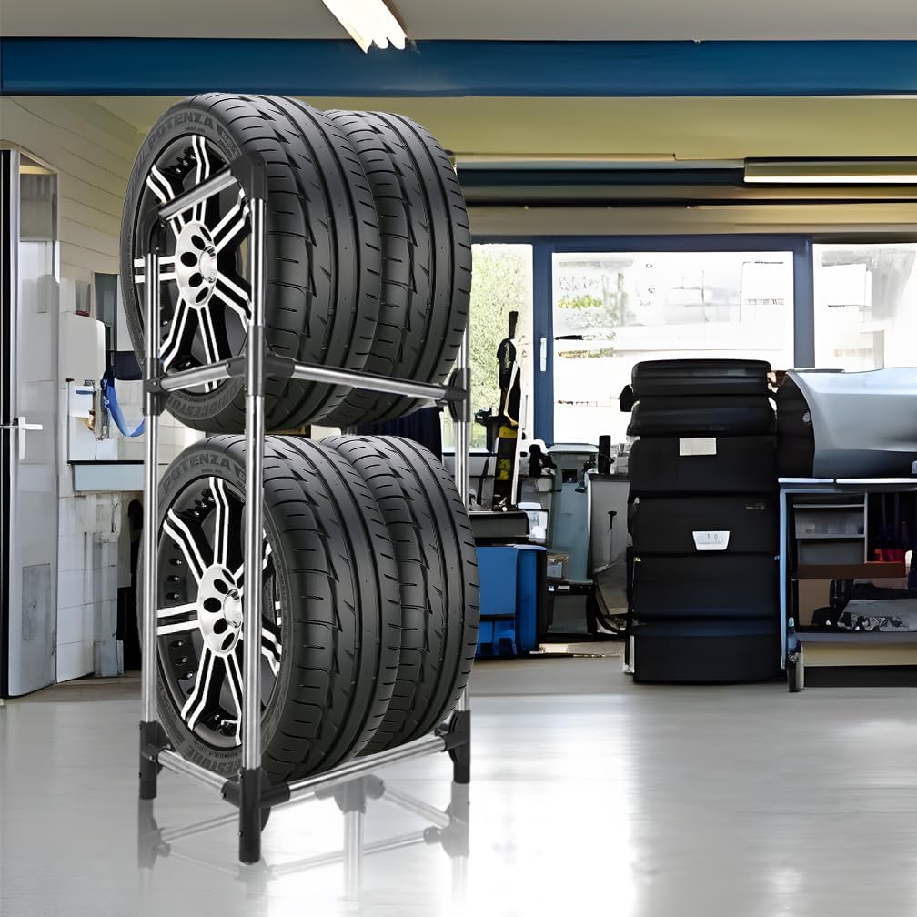 - Double-layer Design: The top and bottom layers can accommodate two tires each, which can exactly storage four tires, and can save the area of use.