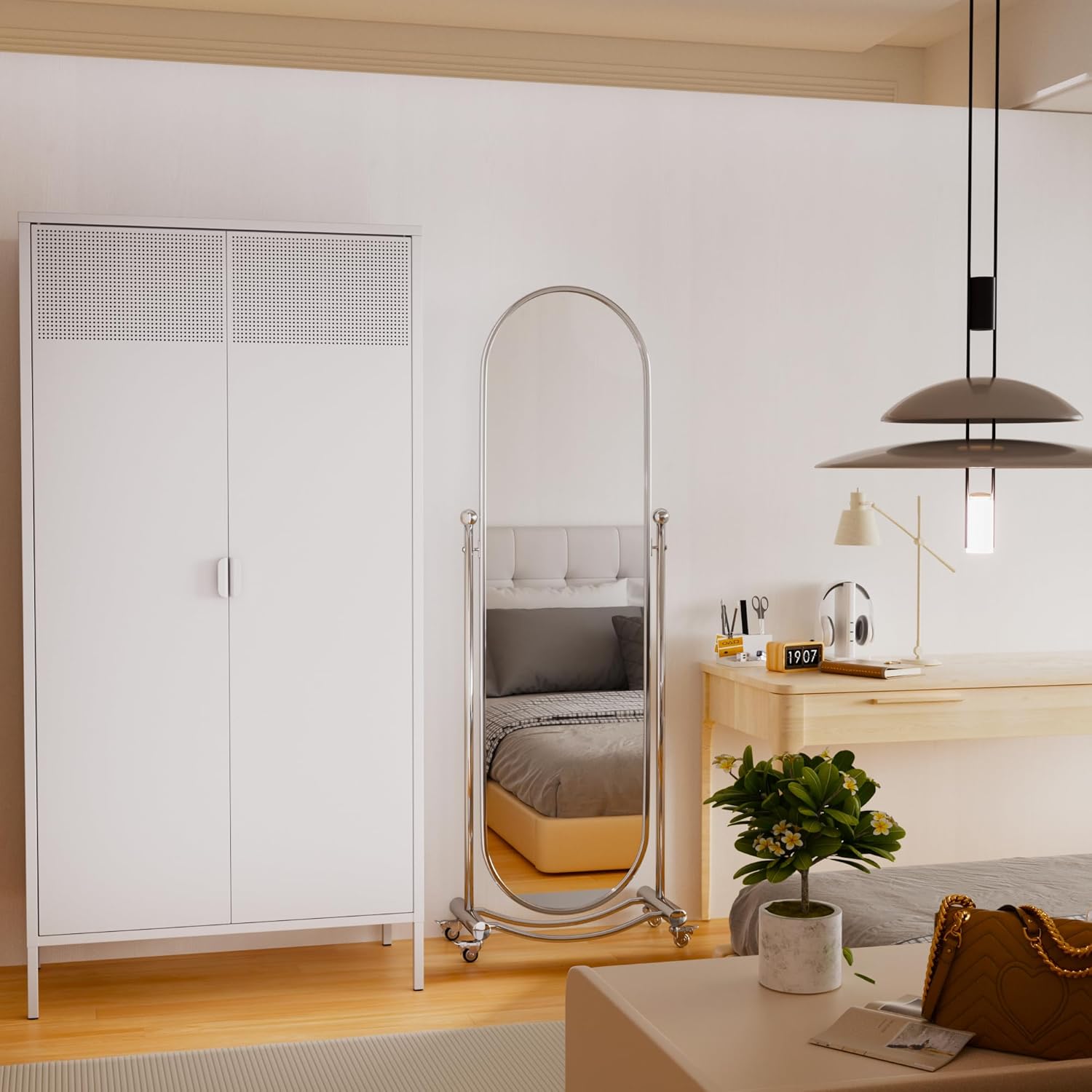 Metal Storage Cabinets Locker with Hanging Rod and Adjustable Shelves, 71'' Clothing Steel Storage Wardrobe for Home & Office, School, Employee,Gym(White, 71''H-Wardrobe)