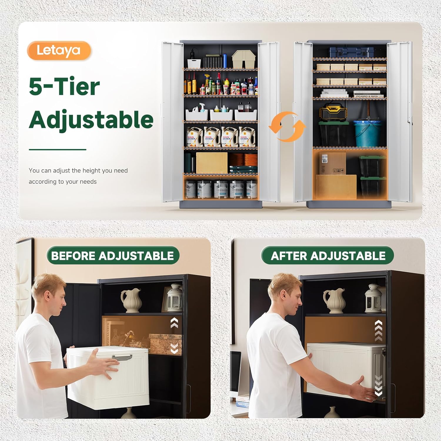 - Durable Metal Material: Letaya metal storage cabinet is made up of 0.8mm steel ,rugged and not easily deformed, plate adopted environmentally powder coated finish, moisture proof ,capacity to resist corrosion and rust