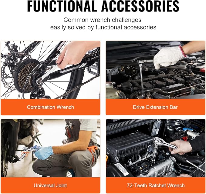 - 【Rust Resistant & Durable】:Our mechanics tool set is made of CR-V chrome plated to ensure rust and wear resistance, and rigorously tested quality materials ensure superior durability and longevity. Complete a variety of repair and installation tasks with confidence.