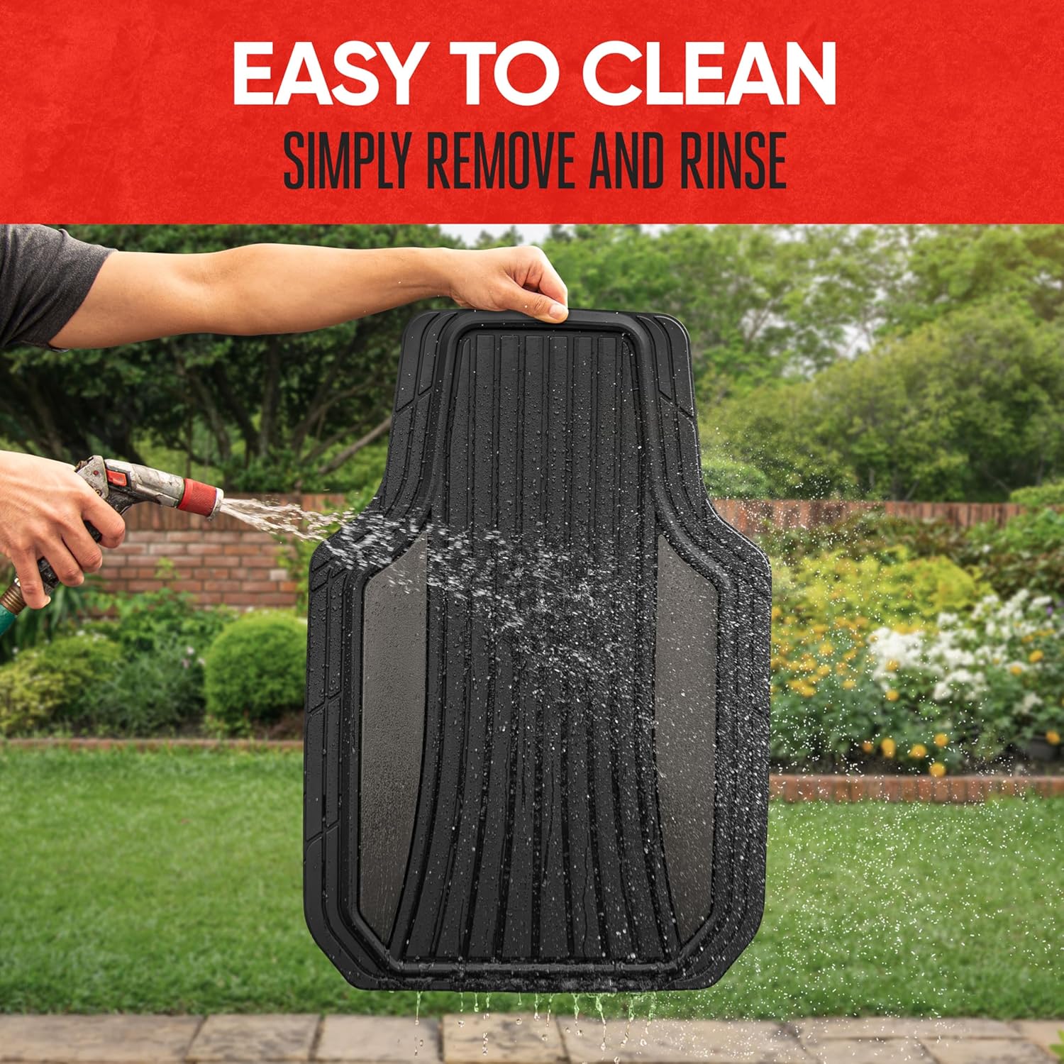 - HEAVY-DUTY RUBBER CONSTRUCTION – Built from premium rubber floor mats material, these auto accessories are tough, flexible, and engineered to handle dirt, water, and heavy foot traffic without cracking or curling.
