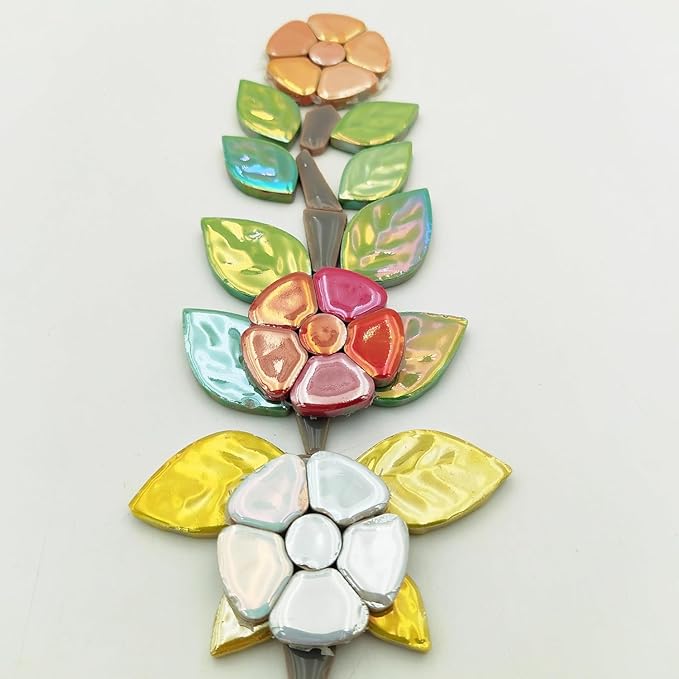 1.1LB Random Iridescent Leaves Ceramics Mosaic Tiles, Making Creative 3 Size Ceramic Mosaic Pieces for DIY Craft,Flowerpots, Vases, Cups, Garden Decor Mosaic Making Supplies (Flowers + Leaves)