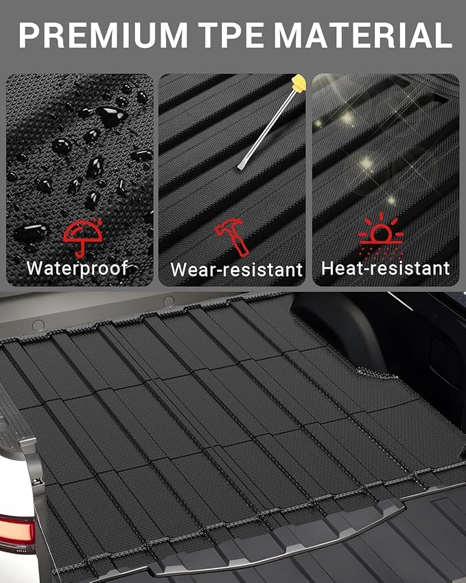 - Eco-Friendly Recyclable Materials, Unmatched Durability: Crafted with the most advanced TPE material technology, our bed liner offers unparalleled durability and environmental friendliness. Subjected to hundreds of thousands of rigorous tests, it's odorless, deformation-resistant, and extraordinarily tough, maintaining its perfect shape over the long haul. By choosing us, you're also making a choice to support environmental sustainability.