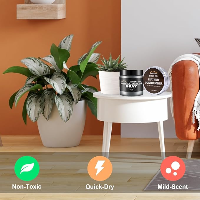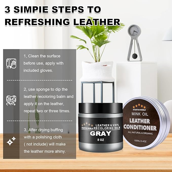 STARTSO WORLD Leather Recoloring Balm with Mink Oil Leather Conditioner, Leather Repair Kit for Couches, Gray Leather Dye for Furniture, Car Seat, Sofa, Shoes, Vinyl