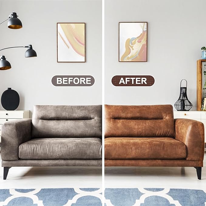 - Leather Color Restorer: Our leather furniture dye is ideal for restoring color to faded and scratched leather, which can help you deal with leather stains, wearing, peeling, scratches and worn out. Fill the damaged part of the leather with leather Restore Cream, and until repair paste to dry completely, and then use leather recoloring balm to restore the original vibrant color of the leather.