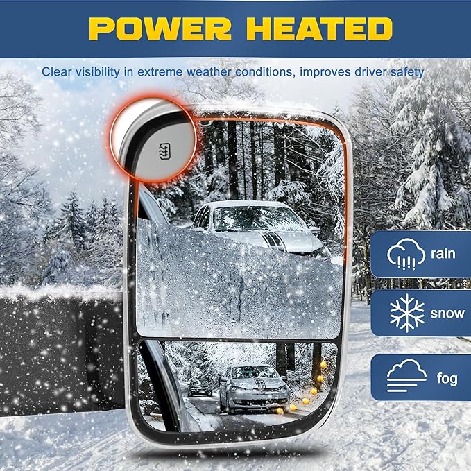 - [ Power Heated and Temperature Sensor ]: Towing mirrors are fitted with heating and temperature sensors that not only monitor the outside temperature in real time, but also have heating, defogging and defrosting functions, which greatly improve driving safety.