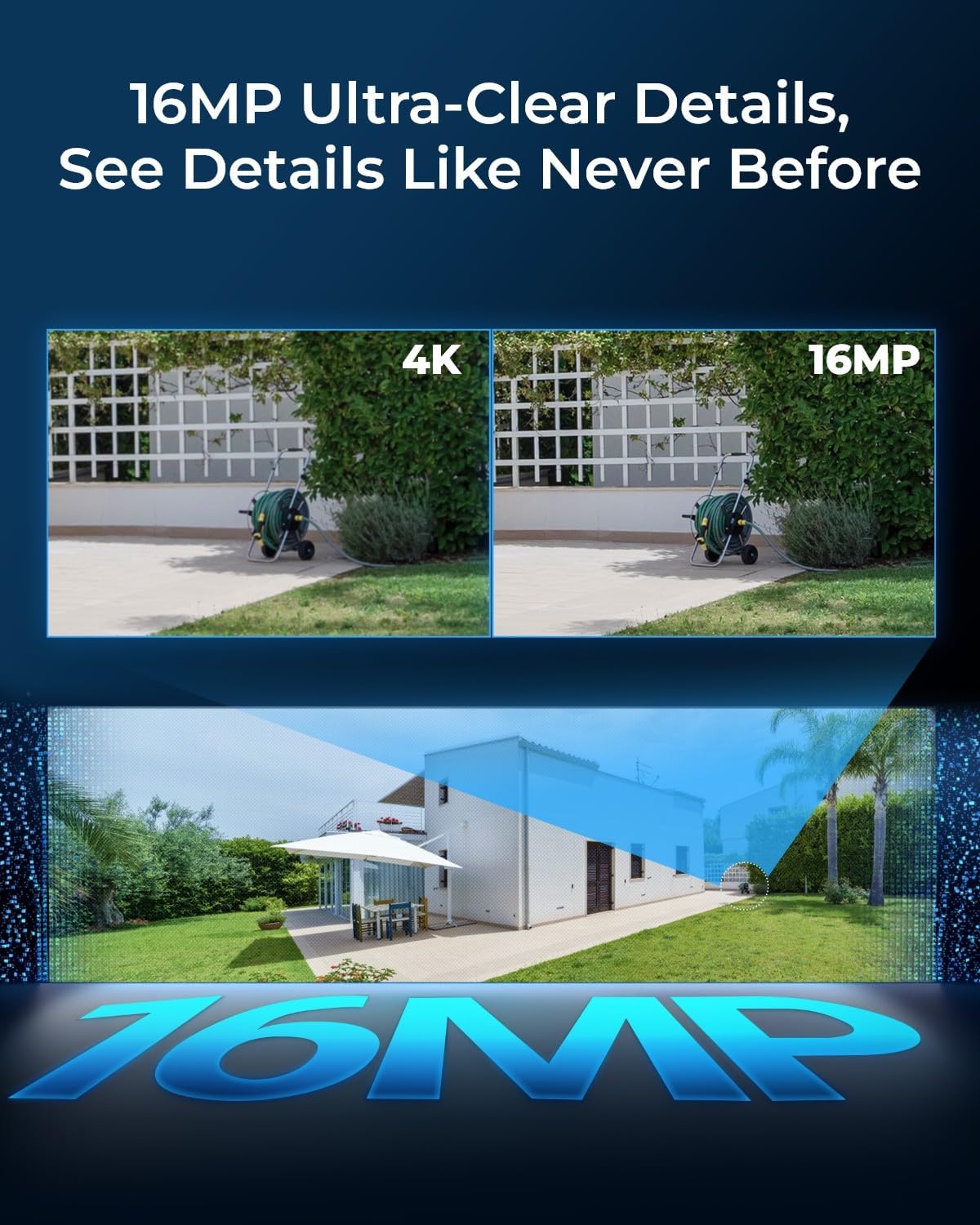 - 16MP UHD & COLOR NIGHT VISION: Featuring two 4K image sensors, this dual-lens camera brings 16 UHD clarity to you, ensuring no small detail goes unnoticed. The F1.6 super aperture and 1/2.7'' CMOS sensor enable greater light intake, while 6x infrared LED lights unveil all night details up to 100ft.