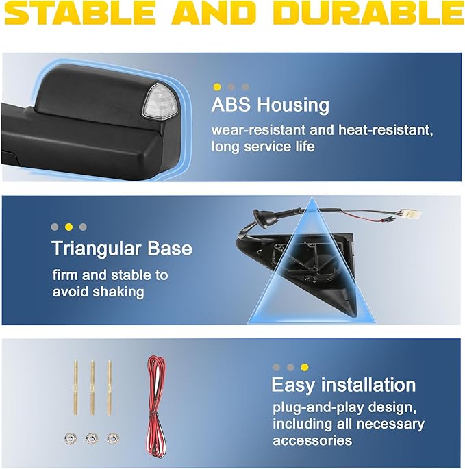 - [ Premium Material ]: High quality Black ABS Textured plastic housing, resistant to the impact of harsh environments and more durable. Triangular base structure, firmly installed, remains clear and stable even under extreme driving conditions.