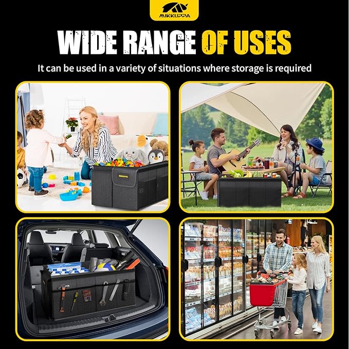 - [MULTI-FUNCTION USE]: You can use the trunk organizer for car in different scenarios, bringing more convenience to your life. It can be used to store your clothes or daily necessities or it can play a key role in your picnic or camping, and more