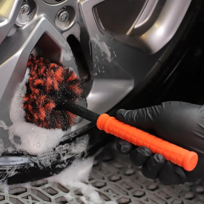 - ERGONOMICALLY DESIGNED: Metal free spoke wheel cleaning brush with rubberized handle for a comfortable grip and non slip design that helps achieve total control and ease of use.