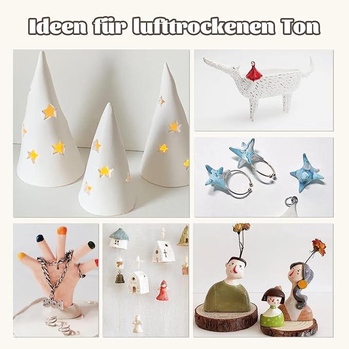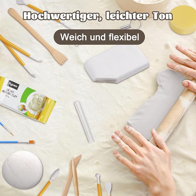 - Certified Safe & Premium Material:Craft with confidence! Our air dry clay for adults is certified to be non-toxic and safe. It's soft, easy to mold, and air-dries naturally to a durable finish within 24-48 hours without the need for baking or kiln.