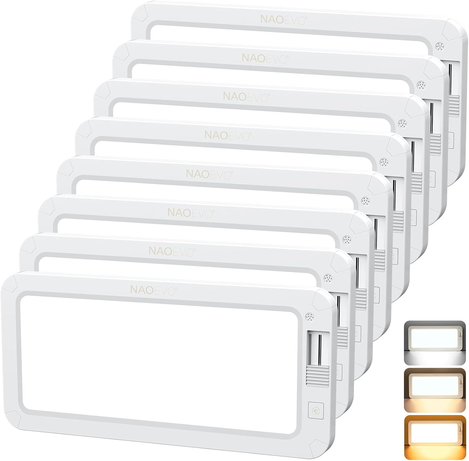 NAOEVO RV Lights Interior 2070LX, 1500LM RV LED Light Interior 12V, Camper Lights with 3 Color and Stepless Dimming, Energy-efficient Ceiling Light for Trailer Boat Car(8Pack, 2900-6500K)