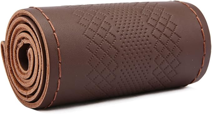DEEYOTA Car Steering Wheel Cover Universal Fit Round Stitch Steering Wheel Wrap Thin PU Leather Steering Wheel Cover Sewn on 15" Car Wheel (Coffee)