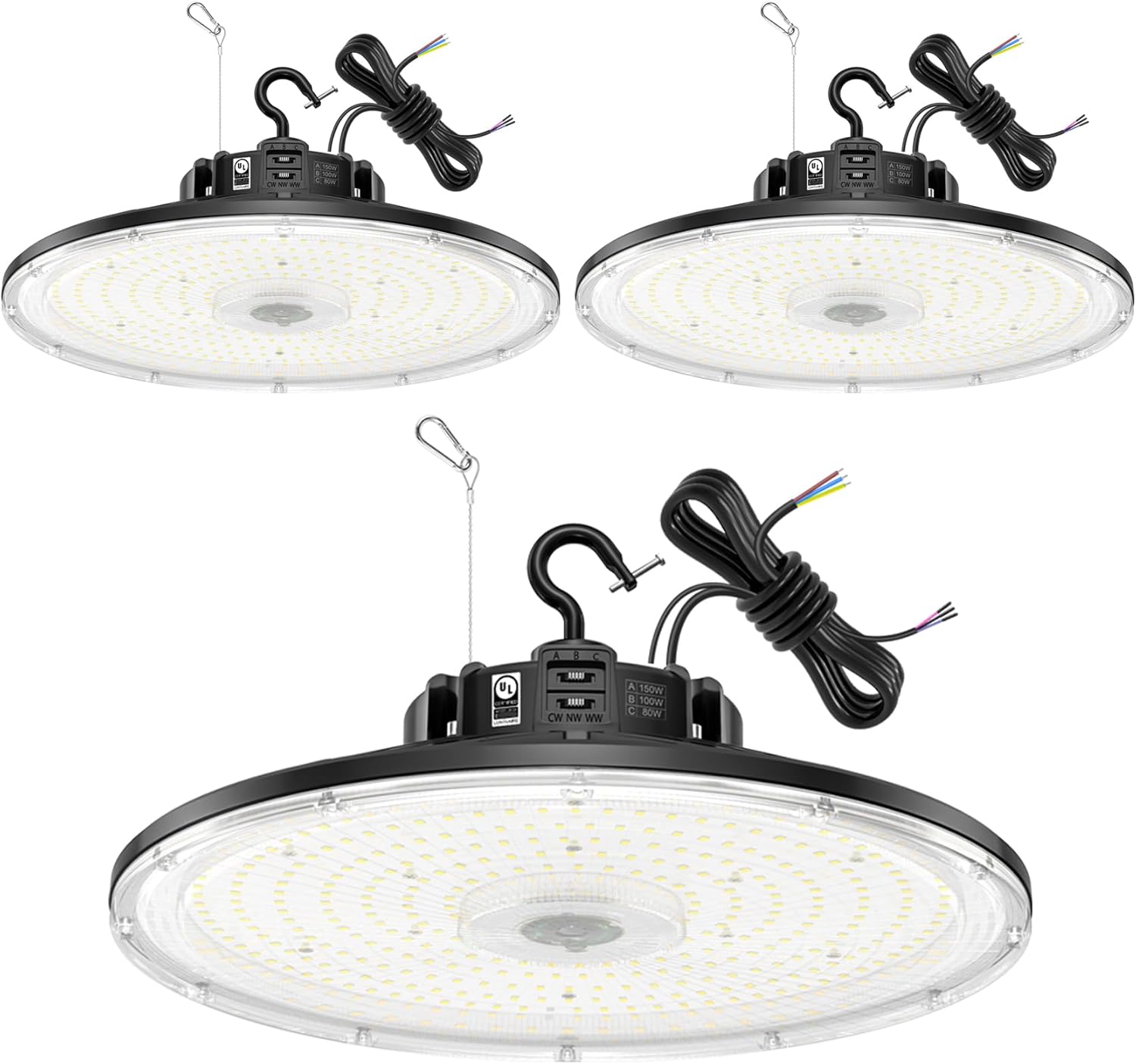 BBESTLED 3Pack UFO LED Low Bay Light 4000K 80W 100W 150W 21,000Lumen 3000K Highbay UFO Lights for Workshop Garage Warehouse Lighting Fixture DLC UL Listed AC100-277V Input