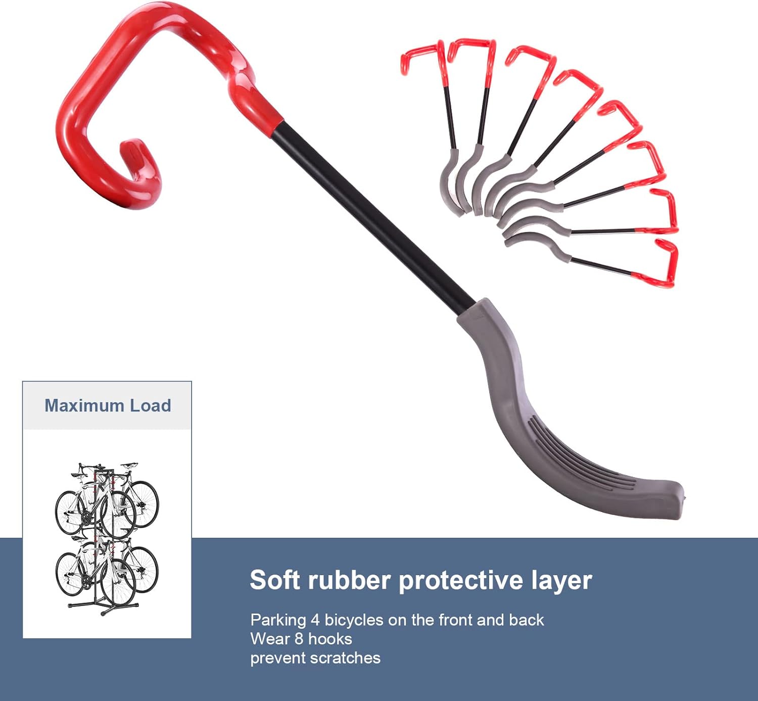 - 【ADJUSTABLE NON-SLIP HOOKS】: Equipped with 4 non-slip rubber hooks to prevent your bike from slipping while protecting the surface from wear and tear. The rack is suitable for all types of bikes - easily store road bikes, mountain bikes, kids bikes, hybrid bikes and more. The adjustable feature allows you to flexibly arrange the hooks according to the size and style of your bikes, ensuring safe and efficient bike storage.