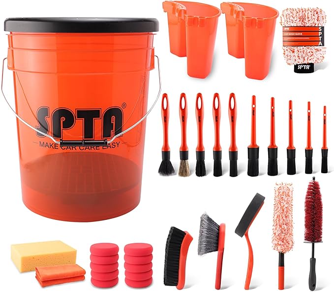 SPTA 33Pcs Car Wash Bucket Set, 20L Scratch Free Detailing Bucket with Car Wash Filter Wash Mitt Sponge Towels Tire Detailing Brush Set, Exterior Interior Car Detailing Set, Complete Car Care Tools