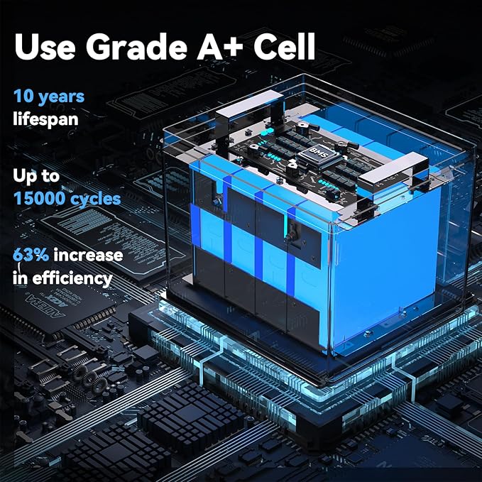 - 🍃High Performance: Our LiFePO4 battery has a capacity of 100Ah and a standard voltage of 12.8V. It features A+ grade cells and can endure up to 15000 cycles. It has obtained SDS/UN38.3/FCC/CE/ROHS certifications, ensuring its quality and safety. You can easily connect up to 4 batteries in series or 4 battery packs in parallel, providing a remarkable capacity of up to 20.48kWh.
