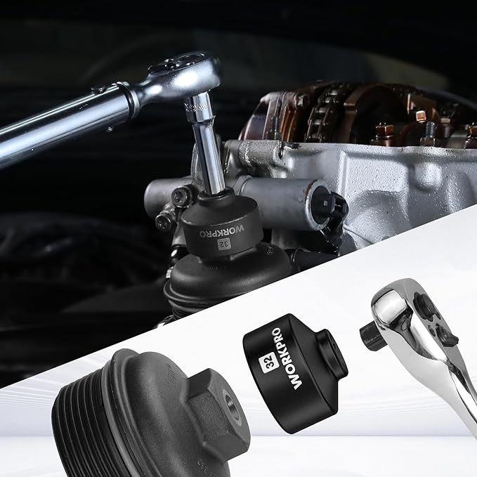 WORKPRO 32mm Oil Filter Socket Wrench, Oil Filter Removal Tool, Oil Filter Change Set, Ideal for Some Ecotec, TDI, VW, Audi, BMW, Polaris, GM, Volkswagen, Pontiac, Chevrolet, Saturn, Pontiac, Saab