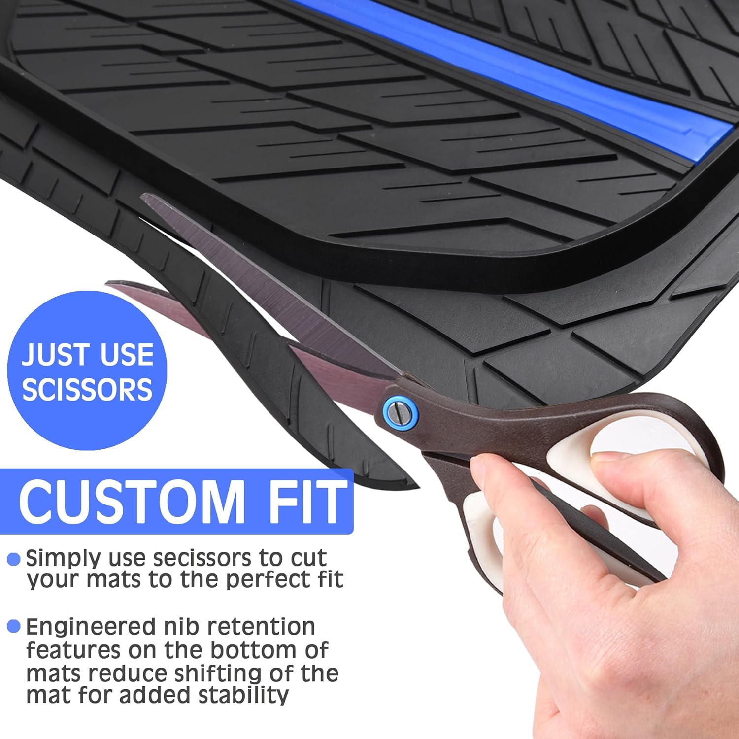 - ăCustom Fit Designă: Created for fast and easy installation in most cars, trucks and SUVs, these universal Flexible Liners floor mats can be trimmed with a pair of scissors to provide the perfect custom fit for your vehicle