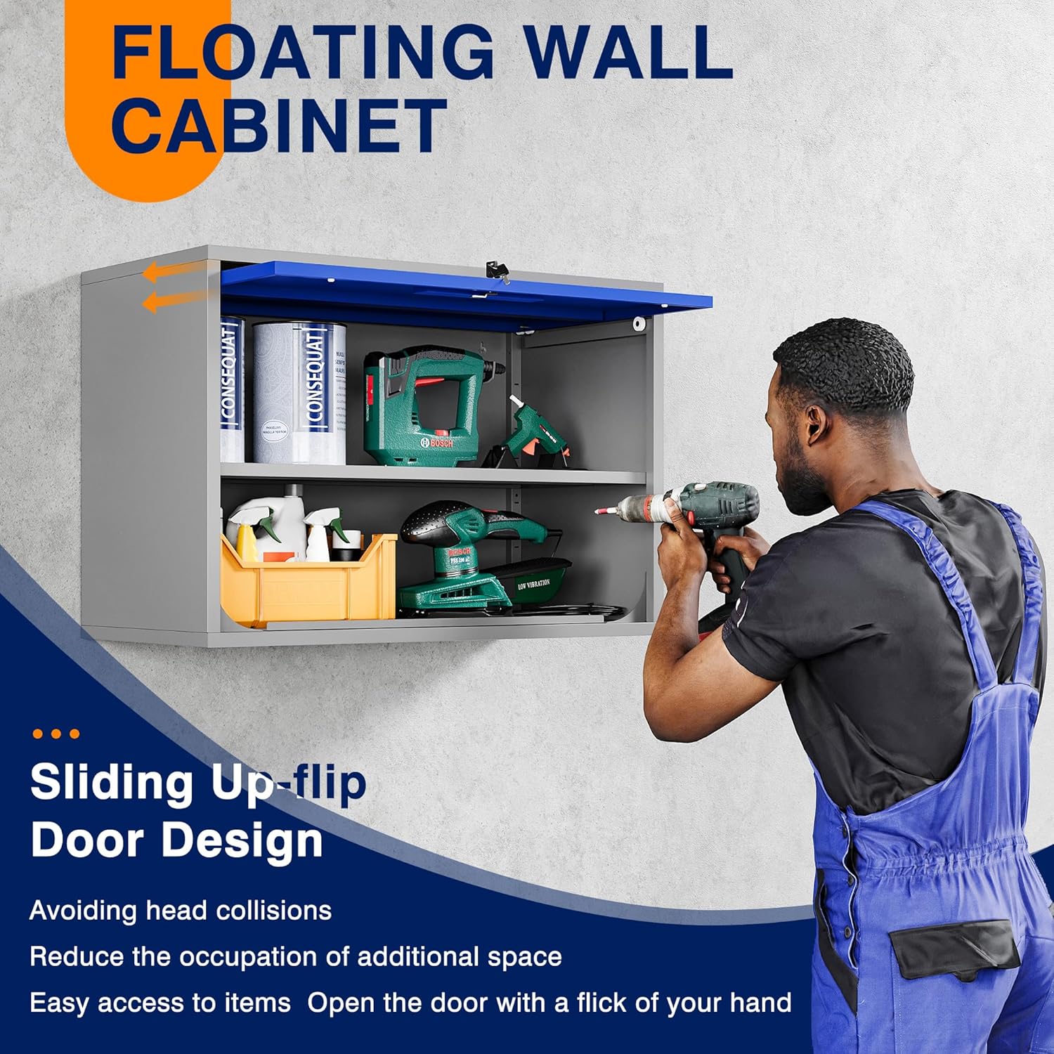 Yizosh Metal Storage Cabinet with Doors & Shelves - Wall Mounted, Floating - Blue Gray, 21.6" H - For Garage, Basement, Kitchen, Warehouse