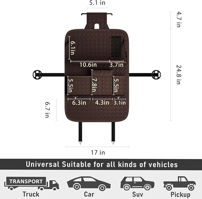 - [Car Backseat Organizer]-Our GMQ car seat back organizer are suitable for various car models and seats.If your car is a sports seat, our seat straps are also suitable because we are equipped with sports seat specific straps.