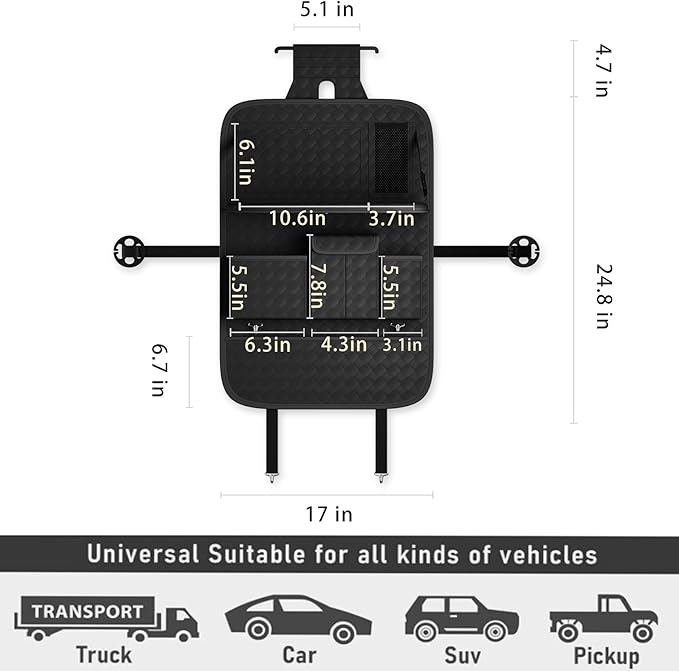 - [After-sale Worry-free]-Whether it is a large truck, SUV or car, the GMQ seat back organizer organizer is suitable for any size of car.If you have any after-sales problems, we will reply within 24 hours to protect your rights and interests.