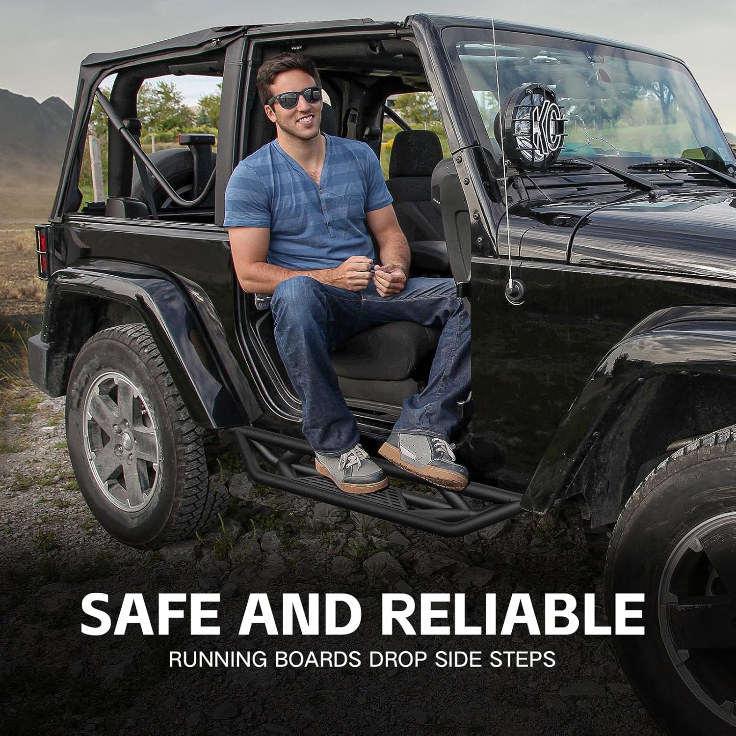 - Vehicle Service Type : Compatible with 2007-2018 Jeep Wrangler JK 2 Doors Running Boards Drop Side Steps