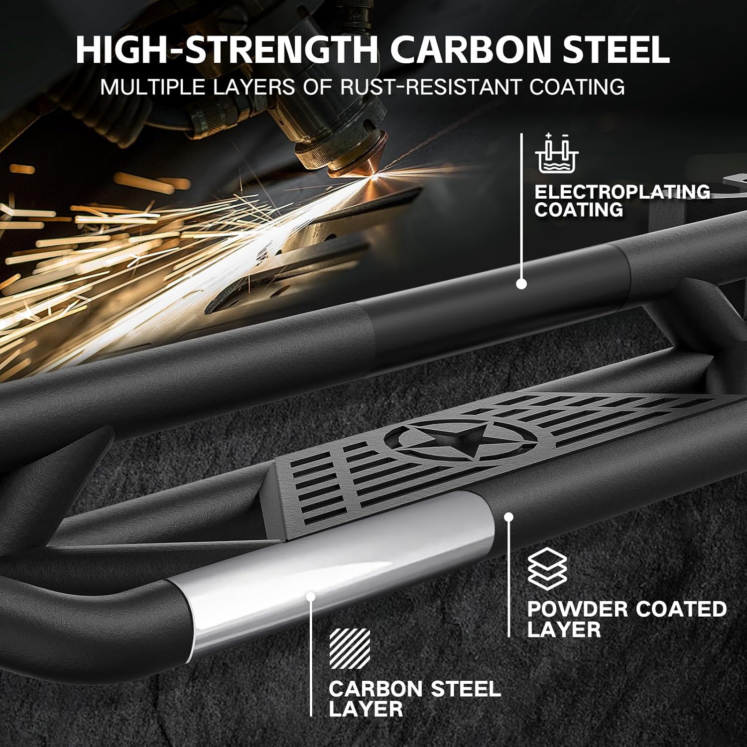 - 【Stylish Design】: Featuring a step-style design with a drop height of approximately 5 inches. The rugged off-road look is complemented by a stylish design, enhancing the appearance of your wrangler JK.