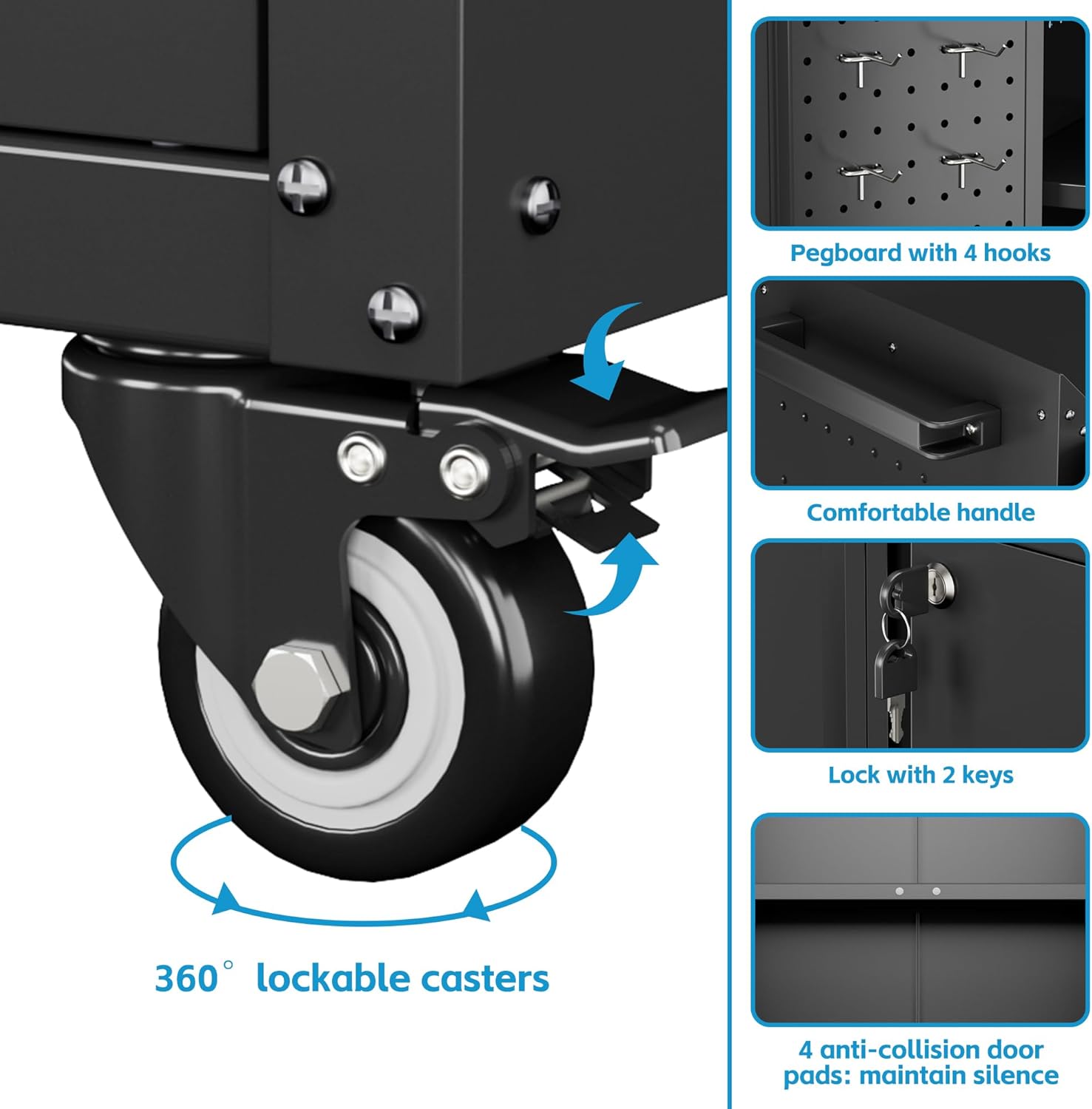 - 【Easy Mobility】Metal cabinet with swivel casters,our steel cabinet is easy to move around your workspace,while the locks on each wheel provide added stability.