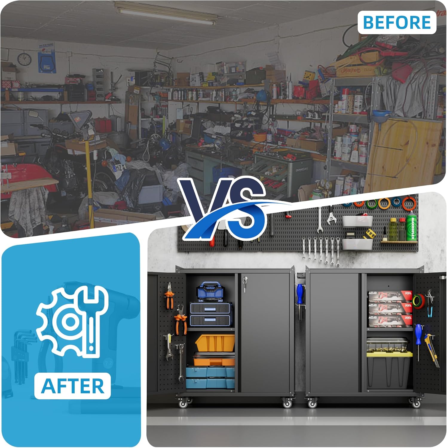 - 【Versatile Functionality】Metal cabinet can be used in garage,office,utility room,pantry,basement,workshops or anywhere needs to get de-cluttered. storage cabinets provide plenty of secure space for you to organize household items,office supplies,tools & much more.