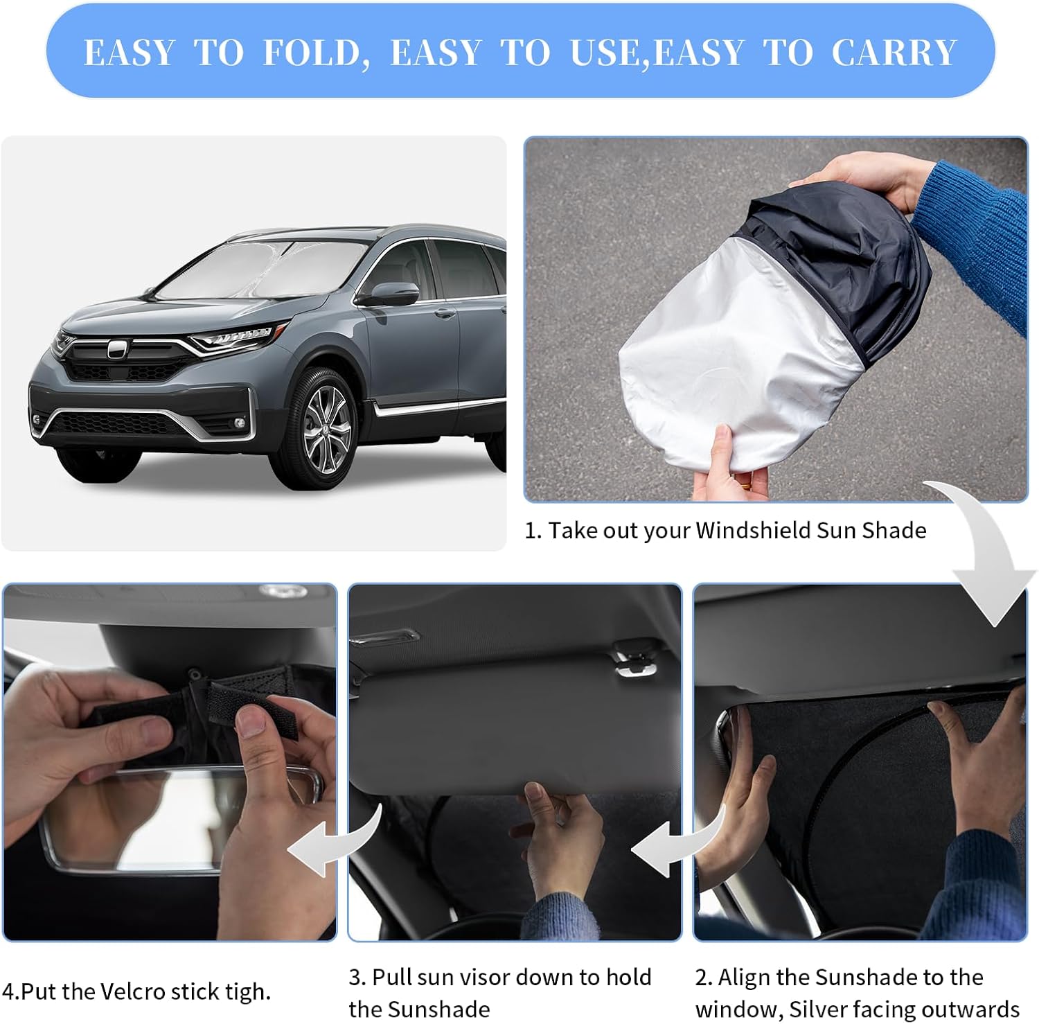 - ăYour Favorite Design ăThe front window shade easily pops out and folds back. Storage pouch is included for easy portability,you will love this designďźIt is not hard for you to fold.Great heat shield interior+accessories for your car.