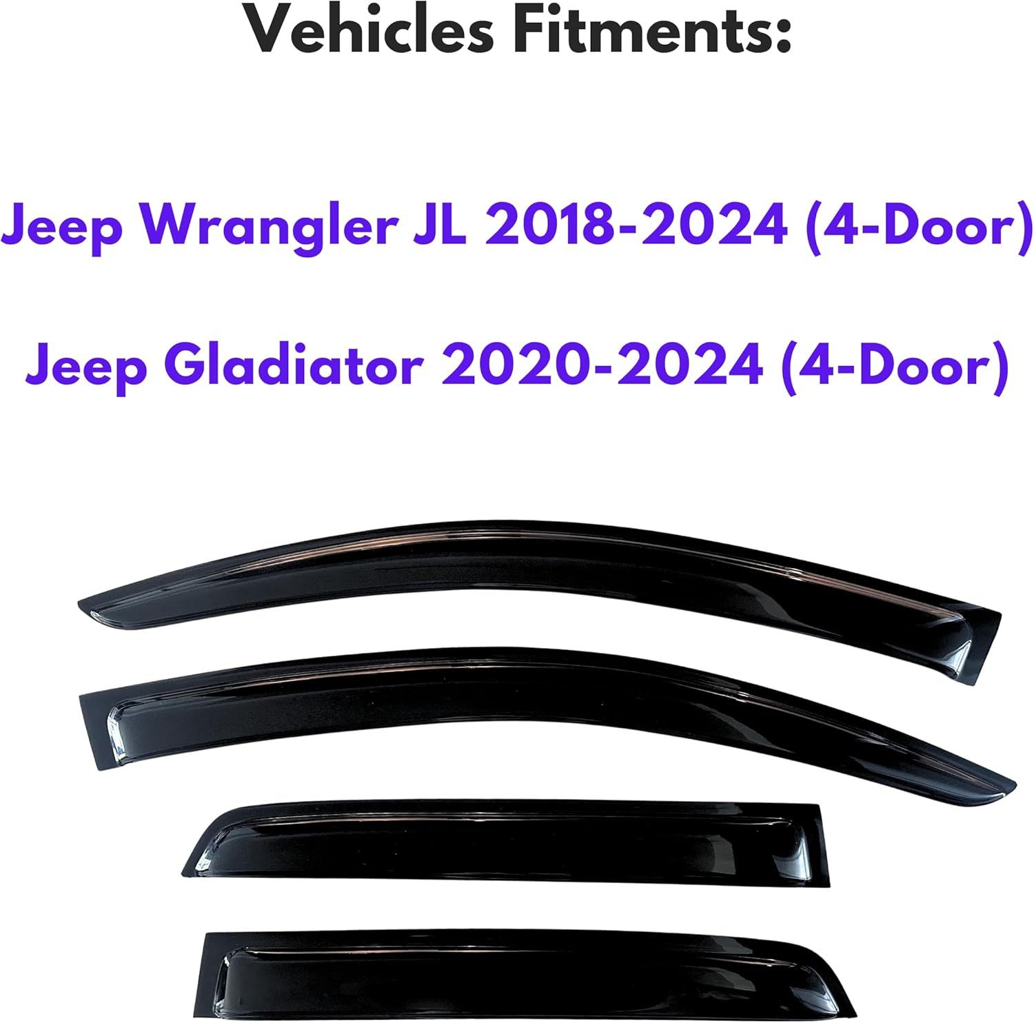 - 【Perfect Fit】KPY window visors rain guards vent deflectors compatible with Jeep Wrangler JL Unlimited 4-Door 2018 2019 2020 2021 2022 2023 2024, Gladiator 4-Door 2020 2021 2022 2023 2024