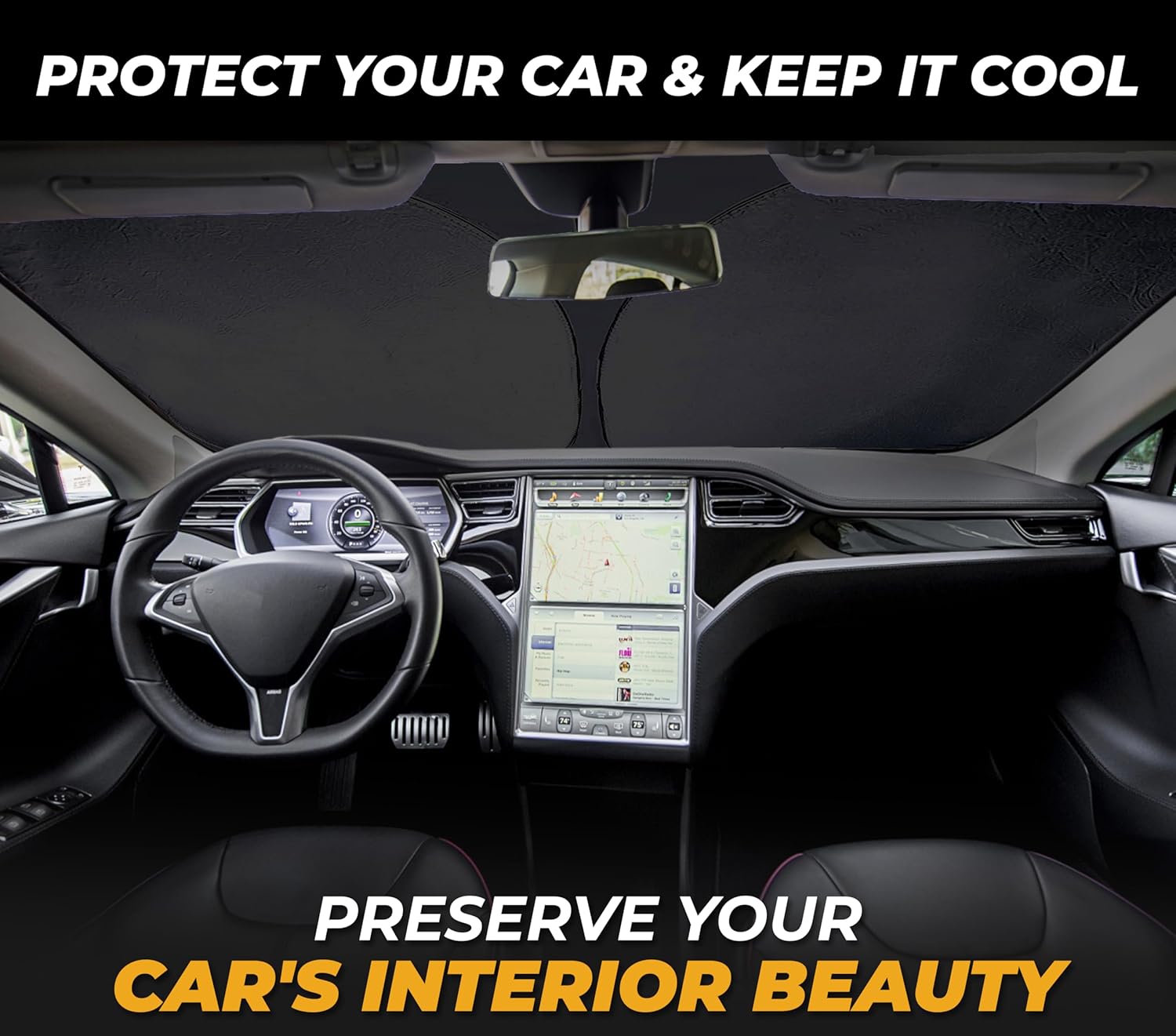 - Perfect Custom Fit for Tesla Model 3 & Model Y – Designed exclusively for Tesla Model 3 and Model Y, this front windshield sunshade ensures a precision fit that blocks intense sunlight and offers full windshield coverage.