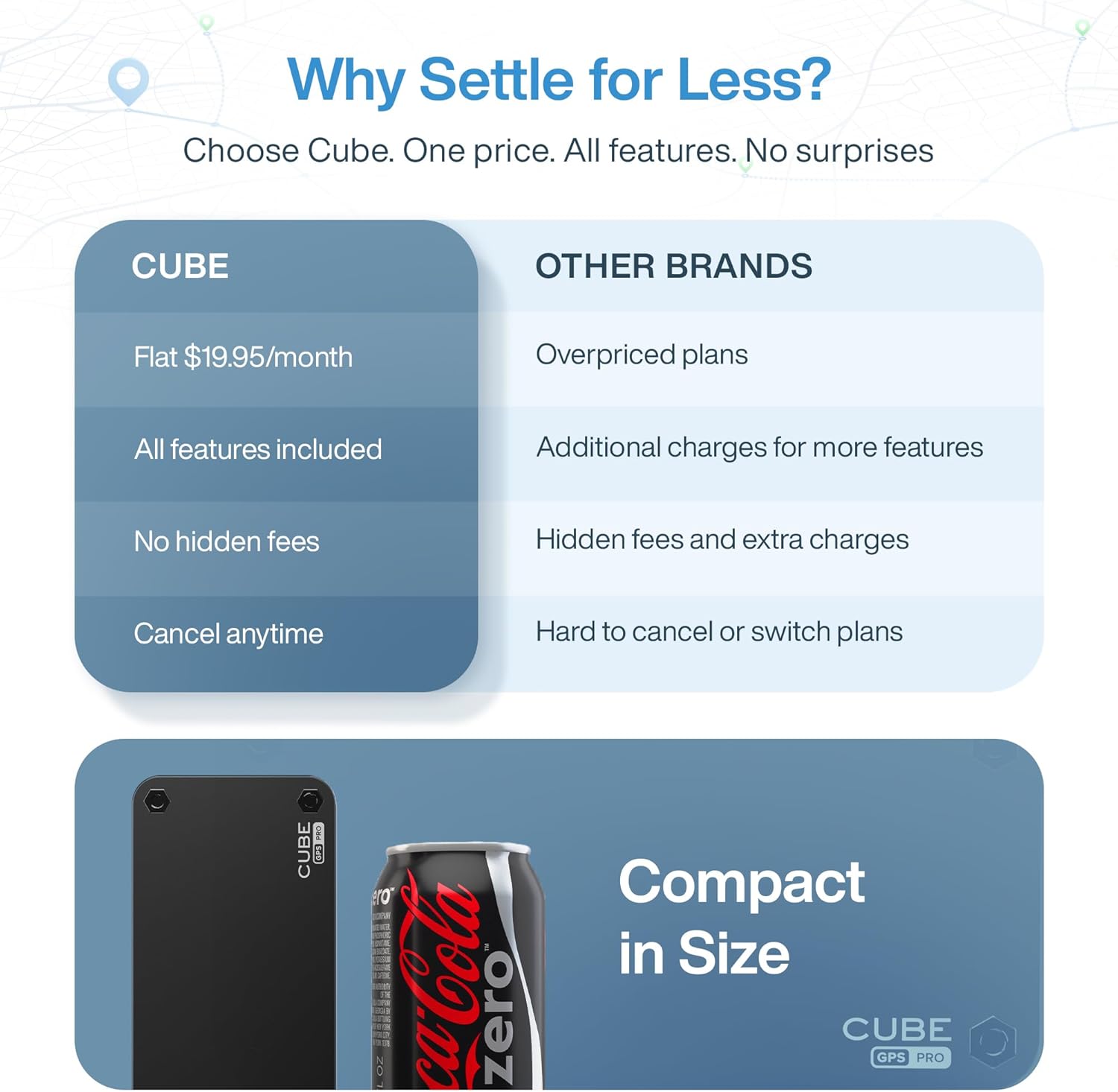 - Shared Tracking Across Multiple Devices – With Cube Pro magnetic GPS tracker for vehicles, share asset locations with others. This vehicle tracker stores location history, including stops and routes, for up to 5 years.