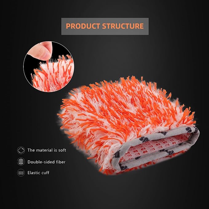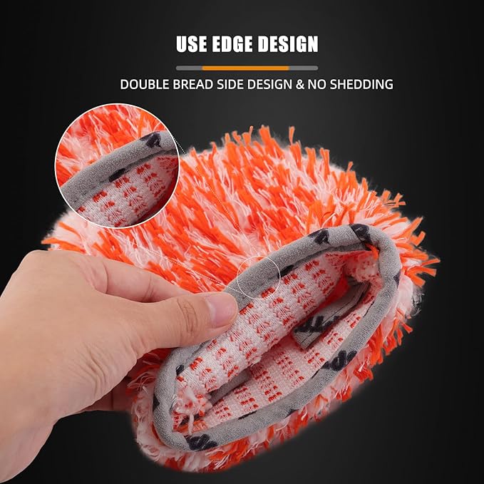 - Easy Care and Long-Lasting Durability:When the job is done, cleaning the mitt is a breeze. Each mitt features two meticulously secured inside layers that endure hard scrubbing and washing. Simply toss the car wash mitt into your regular washing machine and wash on a gentle cycle with low heat. It comes out clean and ready for your next detail job. Plus, its compact and lightweight design makes it easy to store in your garage or trunk, offering convenient on-the-go cleaning whenever you need it.