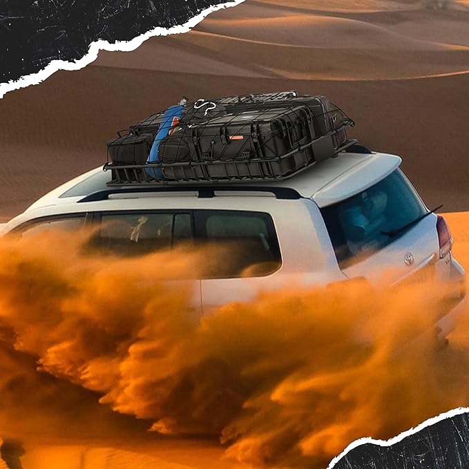 - All-Weather Roof Basket Cargo Carrier : Gear up for every adventure with our car & SUV roof rack cargo carrier ! Engineered to hold up to 250 lbs., this extendable car roof cargo carrier easily attaches to vehicles with cross bars. Built from tough steel finished with a rust-resistant coating, our heavy-duty roof top cargo carriers are designed to endure any weather. Expand your car roof storage without sacrificing security using our sturdy, stable & reliable cargo racks for roof !