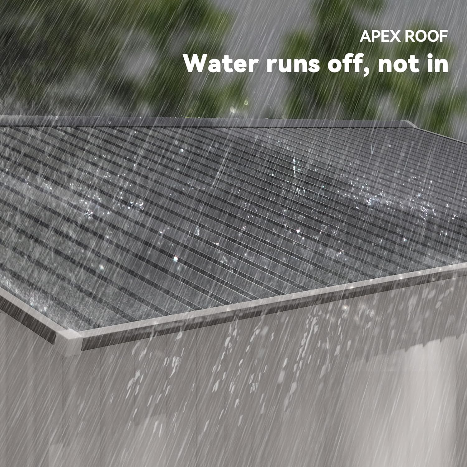 - Sloped Roof Shed: A sloped and striped roof keeps our backyard garden shed from holding on to too much weight during rainfall, preventing possible damage and keeping it intact during all seasons.