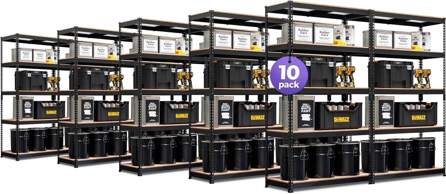 HOMEDANT 5-Tier Laminated Boltless Heavy Duty Metal Shelving Unit Adjustable Garage Storage Utility Rack Shelves Organization Shelf Warehouse Industrial 39.8" W x 18.2" D x 71.3" H 10Pack
