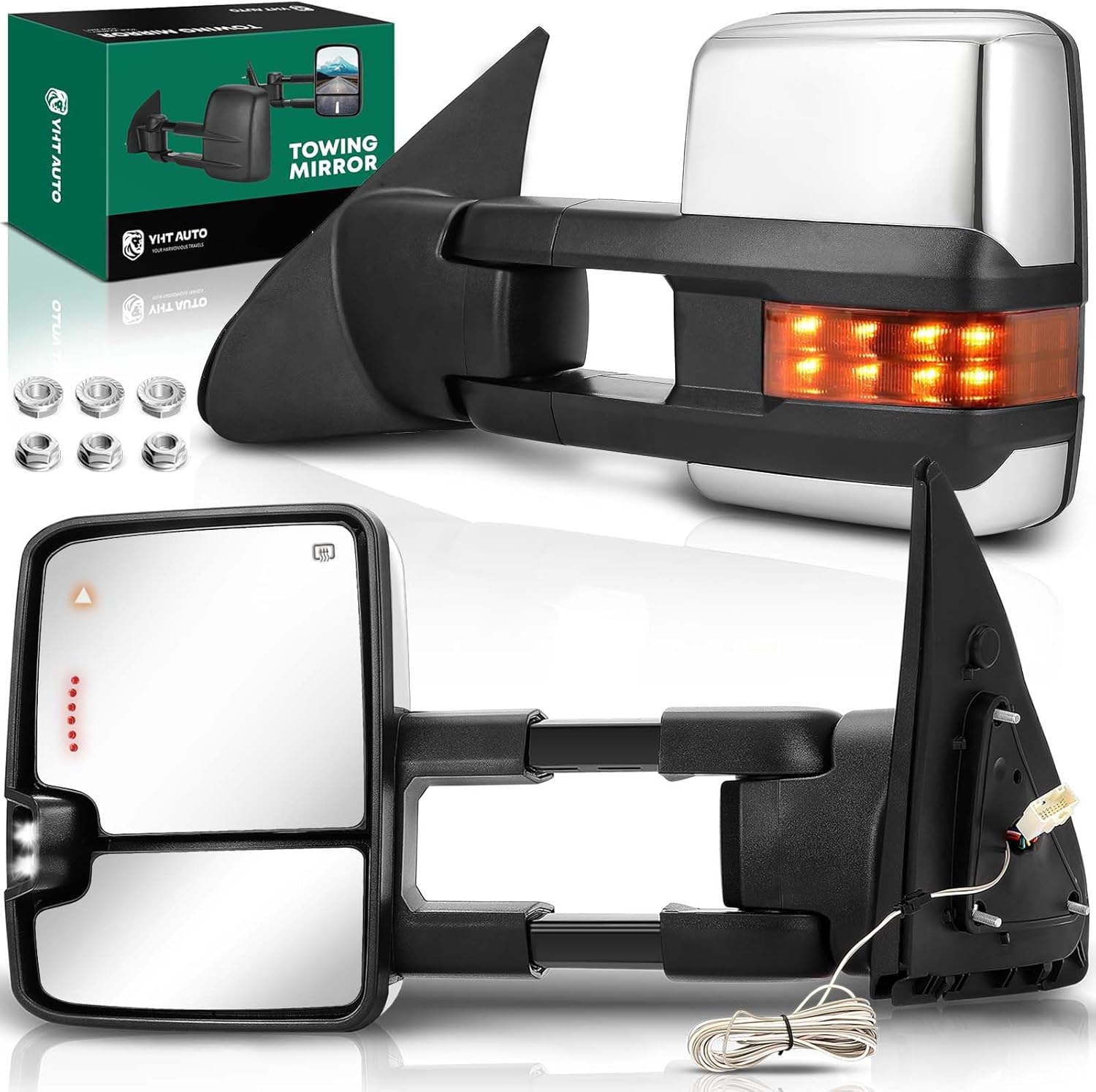 YHTAUTO Power Adjusted Heated Towing Mirrors Fit Toyota 07-21 Tundra, 08-17 Sequoia, Arrow & Turn Signal & Backup Running Light, w/Blind Spot Detection, Telescoping Driver Passenger Side Car Mirrors