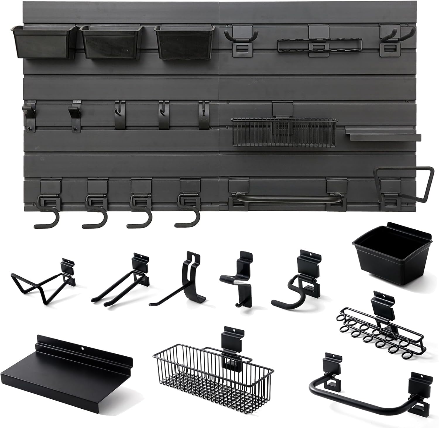Black Tool storage wall Broom Holder Mop Hanger Wall Mount Plastic nano-molecule Organization Garage Storage System Garden Kitchen Tool Organizer Wall Control 2ft 3.8 ft.