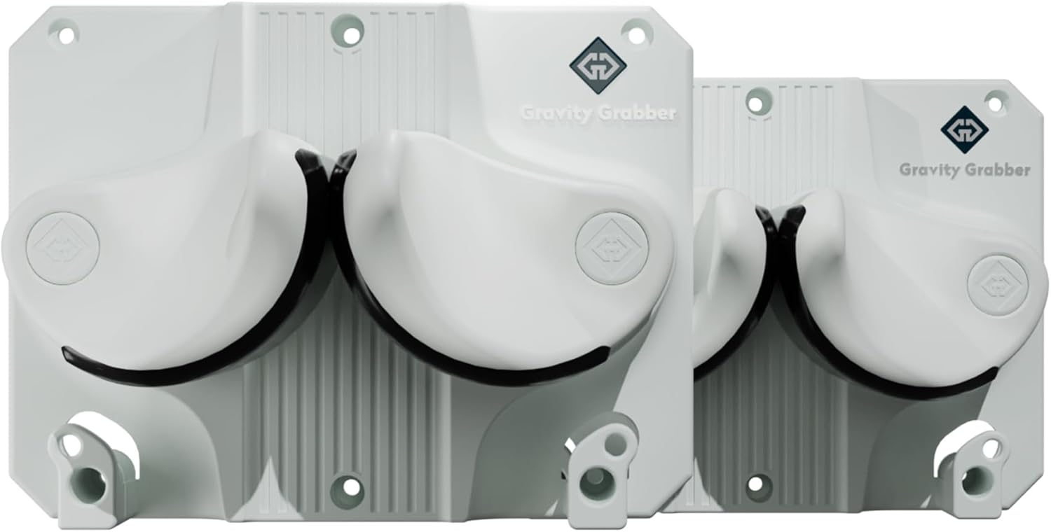 - & SCHLOADS MORE - Keep that garage-mahal organized. Hang shovels, rakes, picks, garden, bike, and home tools up to 20lbs! If you store your skis somewhere else in the off season, Gravity Grabber still has your back. With other equipment in mind, we wanted a design that allows for more than just skis. Each box includes 1 Gravity Grabber, 6 dry wall hangers, 6 screws, 1 manual, 1 sticker.