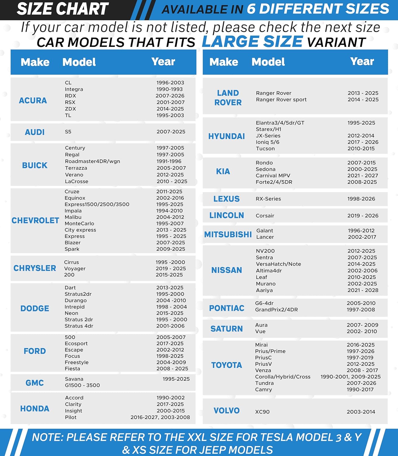 - Available in Multiple Sizes Universal Fit Choose from size chart to match your vehicle. Compatible with most cars, SUVs and small trucks be sure to measure your windshield before purchasing for the best fit.