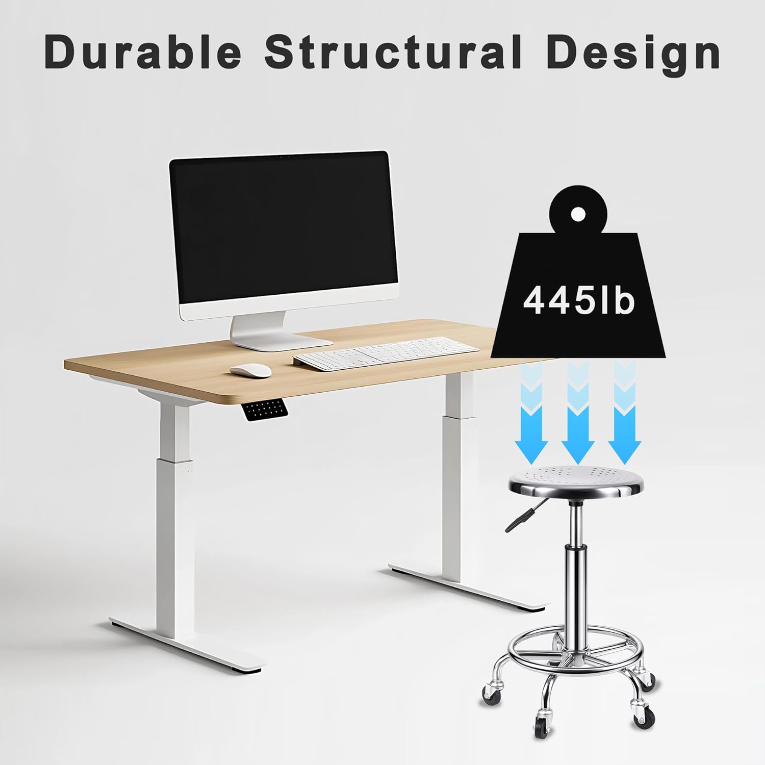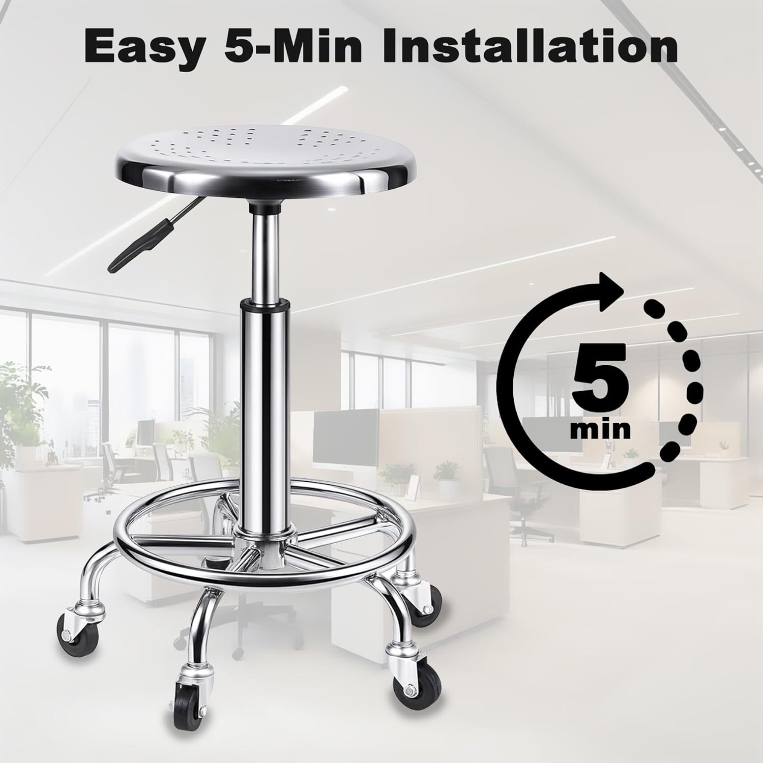Rolling Stool, Stainless Steel Workbench Stool, Adjustable Swivel Stool Medical 5 Wheels, 304 Stainless Steel Structure Laboratory Round Pad, Load Capacity 445 lbs (Silver)