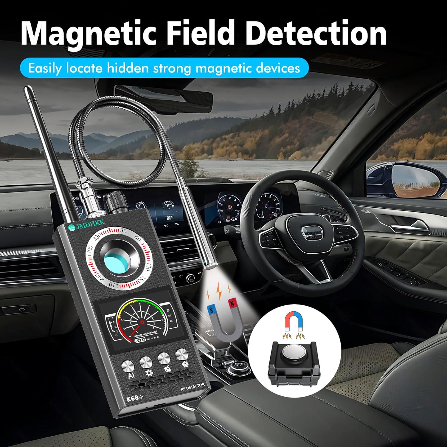 - Magnetic Tracker Detection for Discreet Surveillance Devices: Equipped with a powerful magnetic field detection feature, the JMDHKK K68+ can locate hidden devices that utilize magnetic fields, such as magnetic trackers and covert surveillance equipment. This capability is essential for detecting unwanted devices in your home, office, car, or other spaces where security and privacy are a top priority.