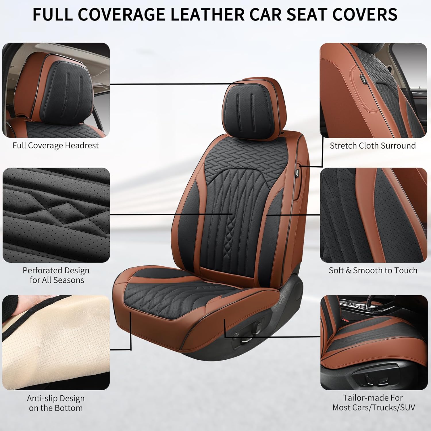 Car Seat Covers Full Set, Leather Seat Covers for Cars, Car Seat Protector Waterproof, Non-Slip Car Interior Covers Fit for Most Cars, SUV, Vans, Trucks,2Seaters,Full Set,Brown-Black,COMFDRIVE-A03