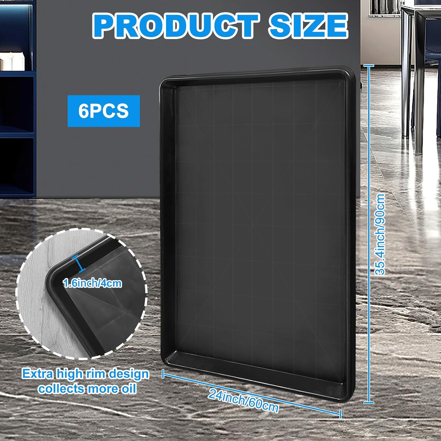 6Pcs Extra Large Auto Oil Drip Pan- 35.4 x 24 x1.6 Inches Oil Drip Tray for Under Car Plastic Oil Tray,Oil Catch Pan Replacement Tray to Keep Garage Floor Show Room Driveway Safe and Clean