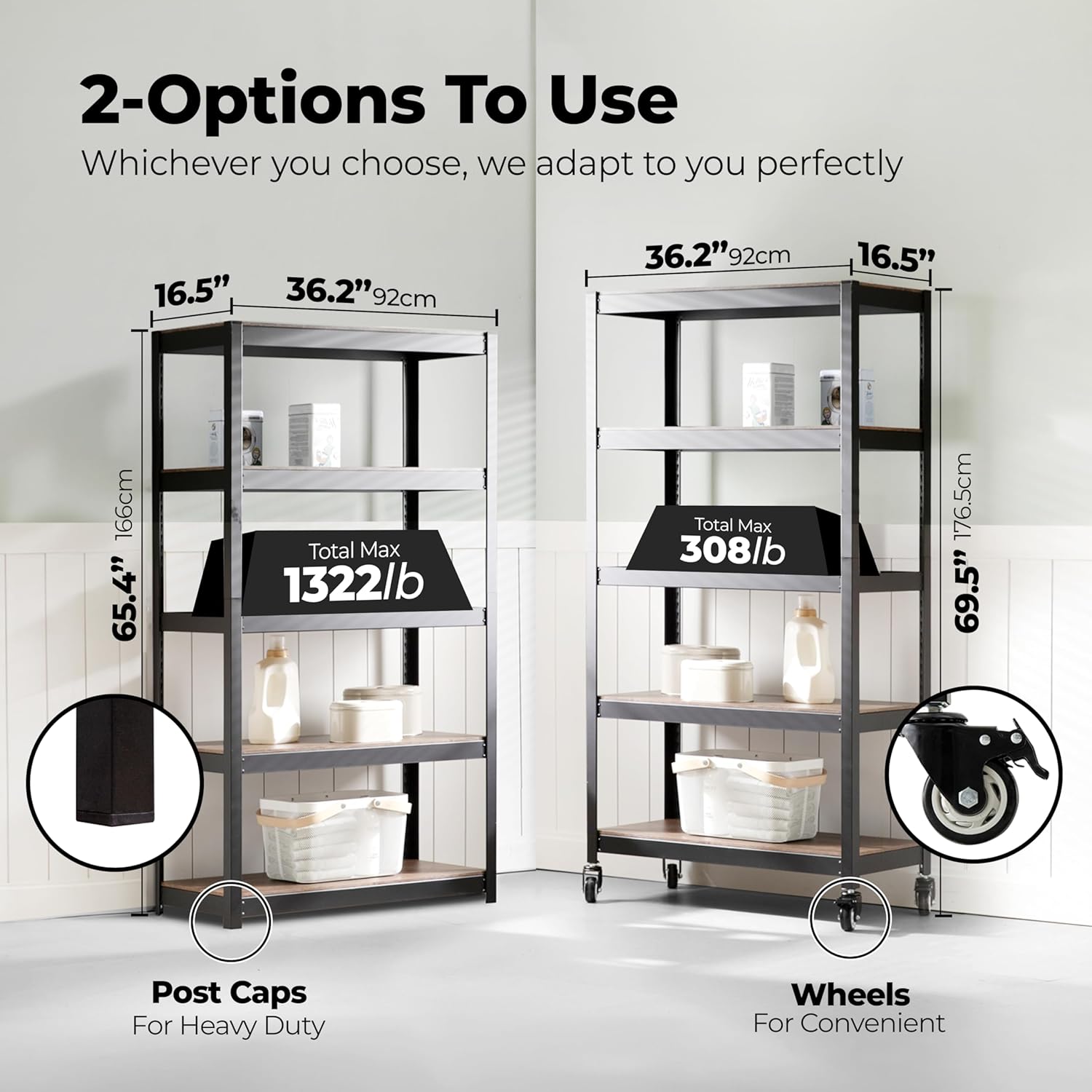 - Size : 36.2"W x 16.5"D x 69.5"H, Wheel-Black
