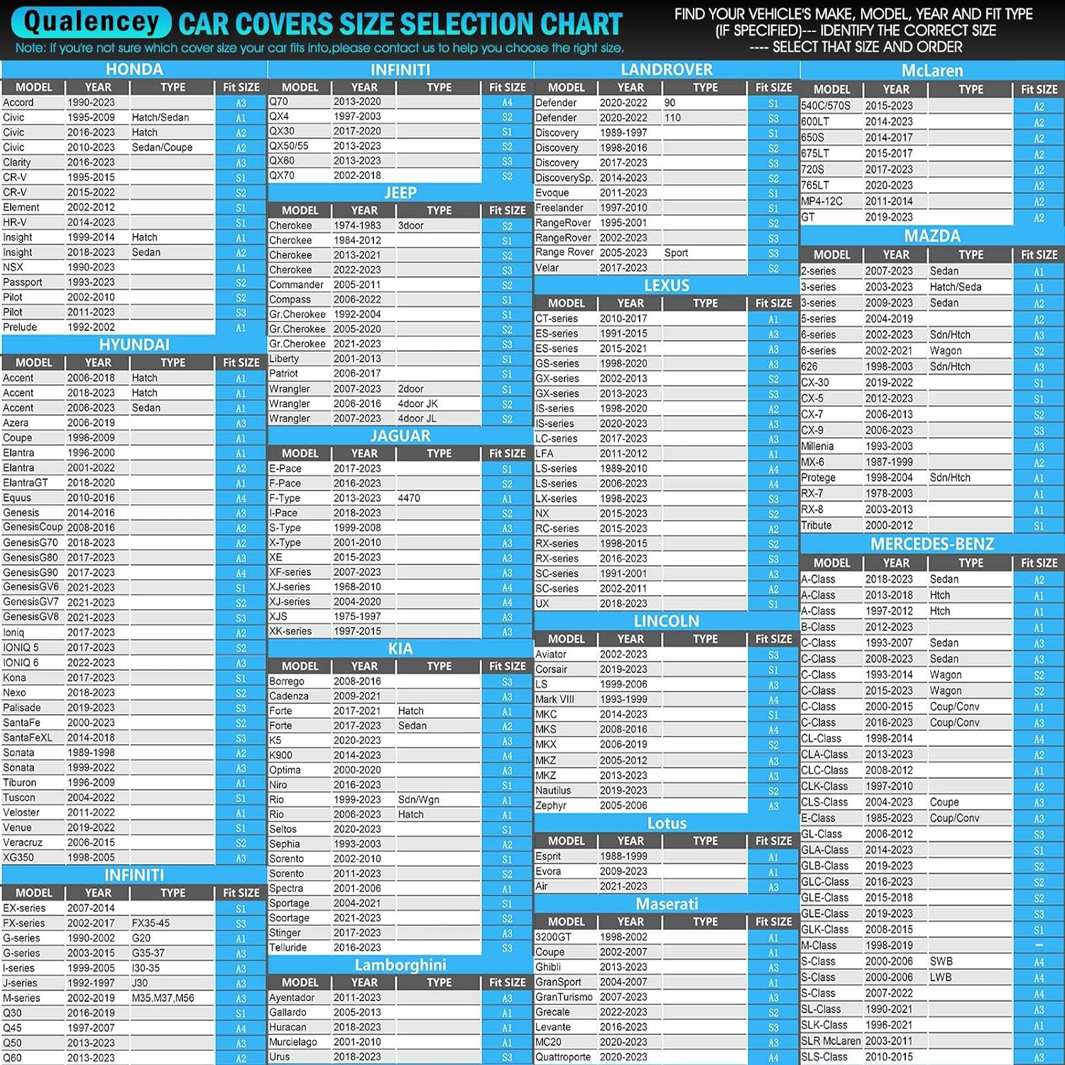 - ăComplete Protectionă: The Qualencey car cover is perfect for indoor and outdoor use, protecting your car from UV rays, snow, rain, frost, sand, dust, leaves, branches, and birds, whether in sunlight or cold weather.