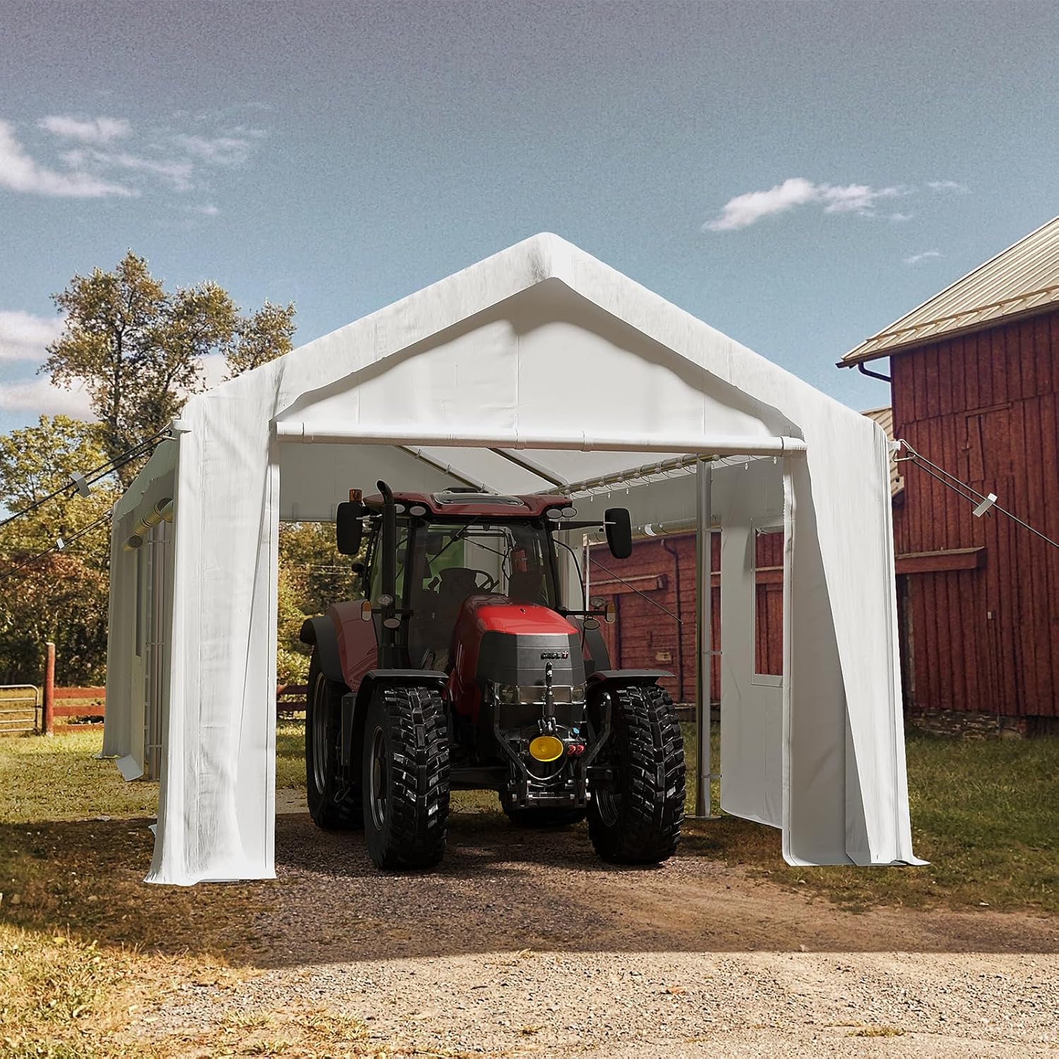 - Large Size Carport: Choose from 10'x20', 12'x20', or 13'x20' sizes and 4 colors to perfectly fit your needs. This carport provides spacious space for cars, trucks, SUVs, boats, trailers, or general storage. Removable sidewalls and doors enhance versatility for parking or hosting events like parties and weddings.